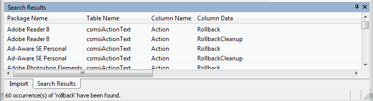 You can search for data in Application Catalog tables by using Find on the Home tab of the Application Manager ribbon. You can search all tables in all packages in a group, or just search one column in one table of one package.