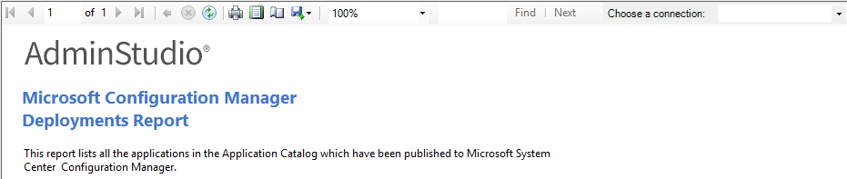 In order for this report to contain information, you need to have entered your ConfigMgr (Formerly called as System Center Configuration Manager) server information on the Distribution System tab of the Application Manager Options dialog box, as described in Creating Multiple Named Connections to Distribution Systems.
