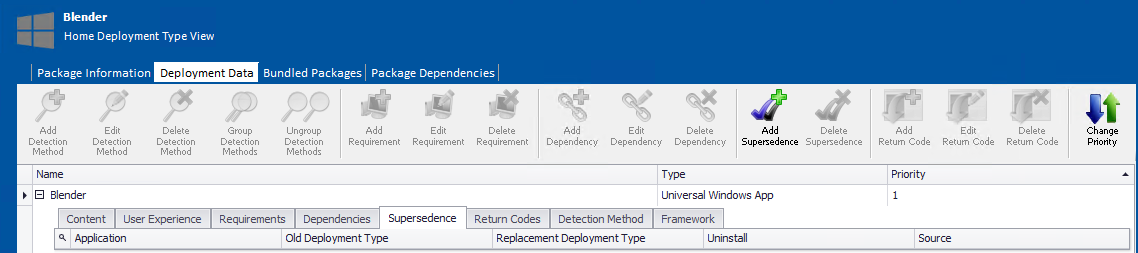 - Click the Deployment Data tab and open the Supersedence subtab.