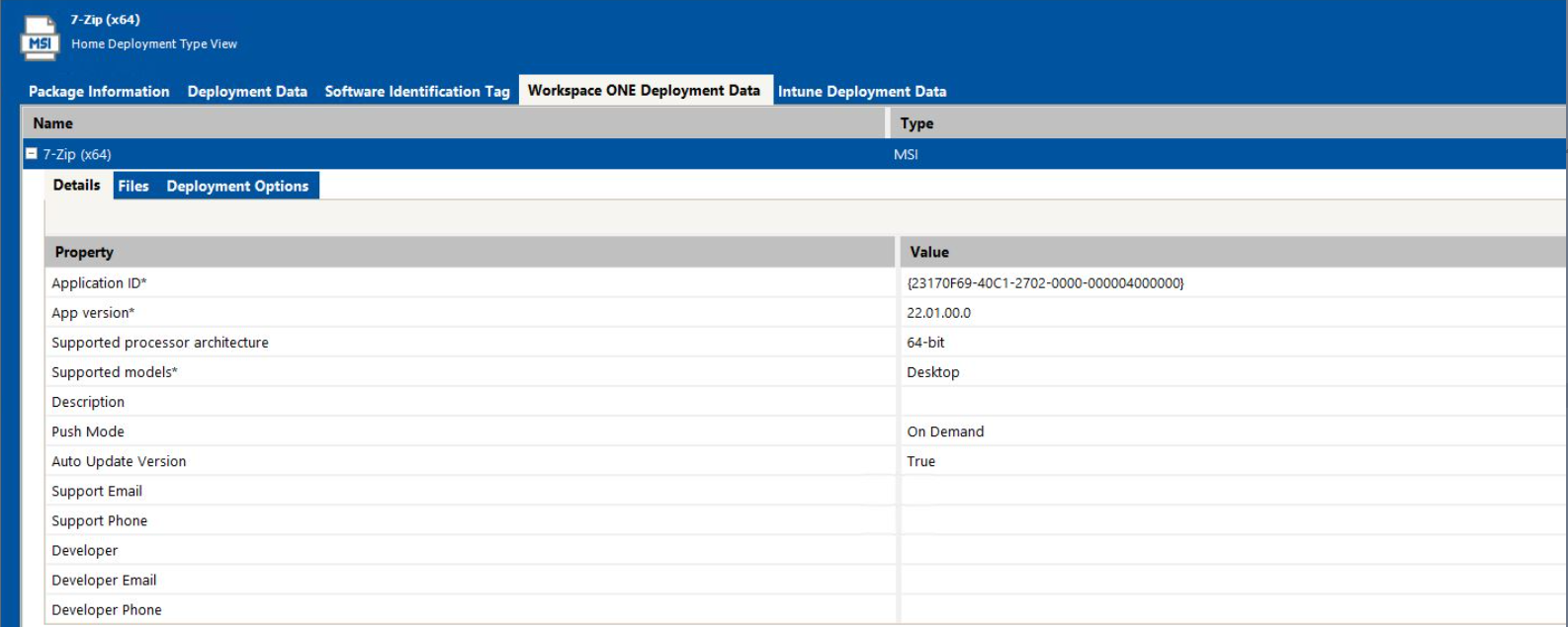 3. Click the Workspace ONE Deployment Data tab and open the Details subtab.