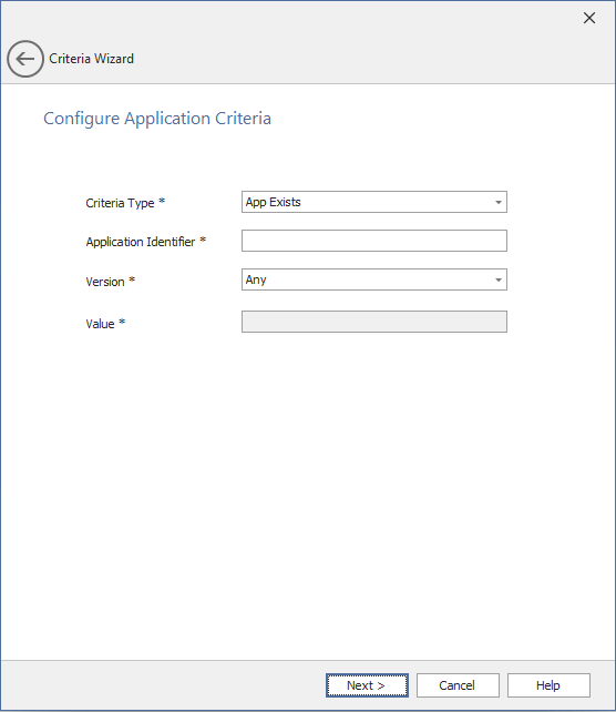 | Criteria Type | Select one of the following Criteria Type: App Exists App does not exist |