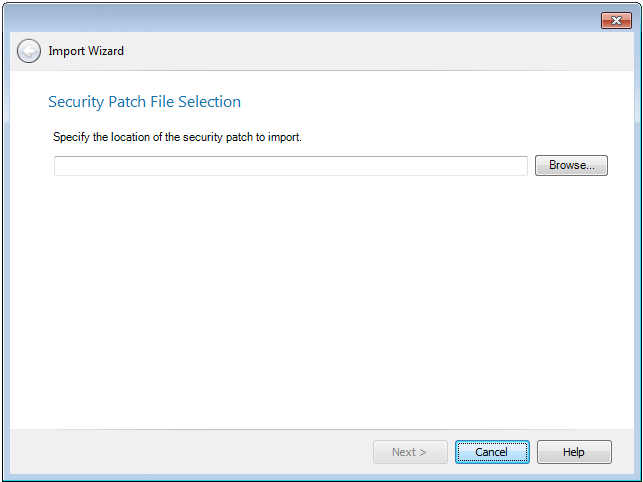 Browse to a security patch file and then click Next to continue.