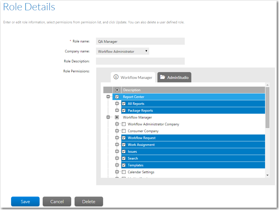 Click Save to save your changes and return to the Role Administration page. To exit without making any changes, click Cancel.