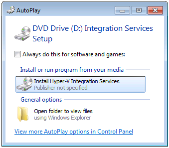 - You will then be prompted to install the latest version of the Hyper-V Integration Services: