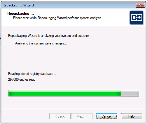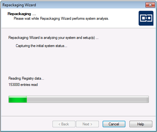 Depending on settings configured before starting repackaging, the analysis may stop following the initial phase, and again after setup has been run.