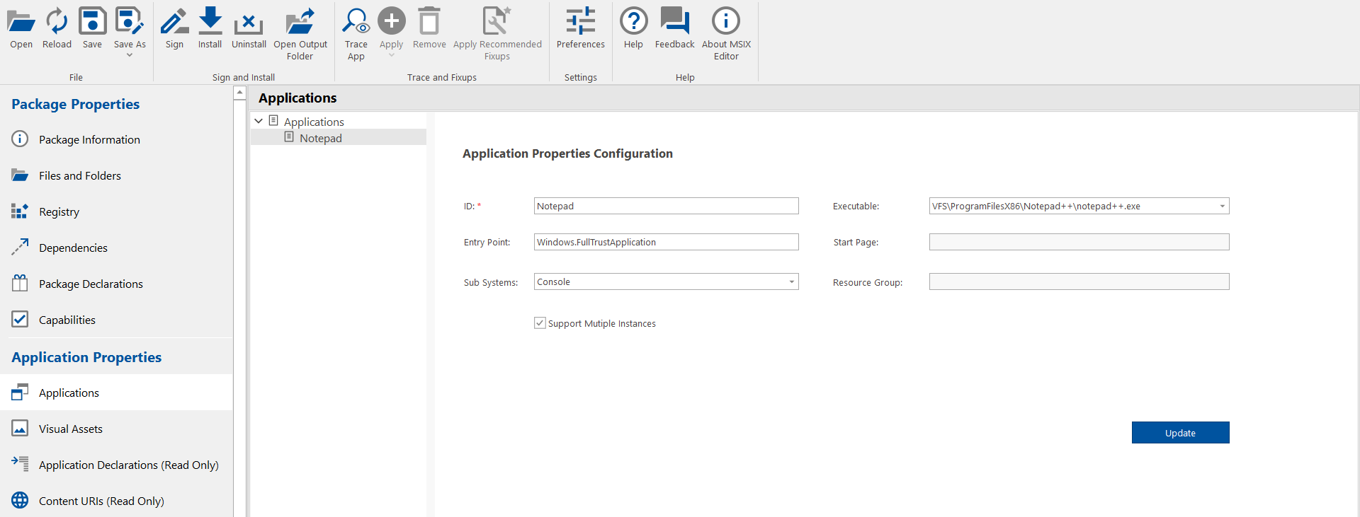 3. Modify as necessary and click Update.